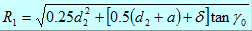 在設計錐襯套之前,進動角r0、主軸尺寸d1,d2、偏心軸套上平面到懸掛點O的距離H、直徑和高度D、H均為已知。根據下圖1所示的幾何關系可求得O點到錐襯套上口間隙處擺動半徑R1值和R2值: